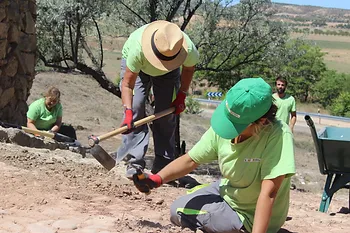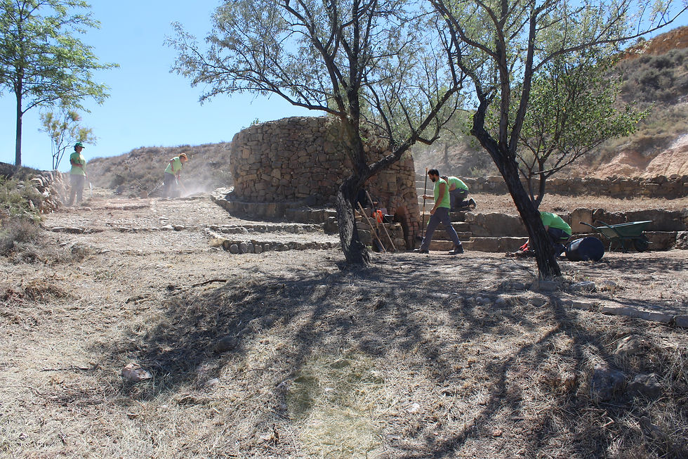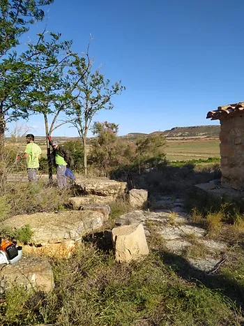 Durante el Programa Experiencial 23/24 una de las actuaciones fue limpiar de hierbas,barro y poda, el entorno alfarero. También cambiamos con un muro, la canalización de las aguas que bajan del barranco , para que no se vuelvan a embarrar los empedrados y el ultimo día completamos la actuación plantando algún boj, pinos y robles.