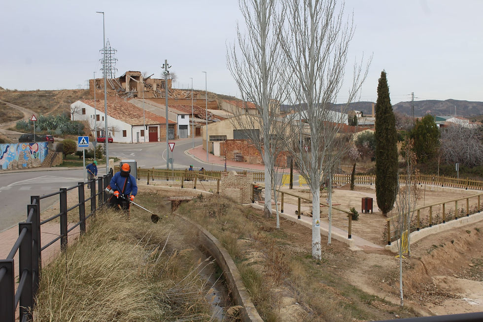 Ya con los pesados bancos en su sitio, y con la paciencia de tod@s a la hora de pintar la valla, por fin terminamos esta tarea, no sin antes desbrozar los alrededores ya que las hierbas se apoderaban del talud y escondían basura acumulada.