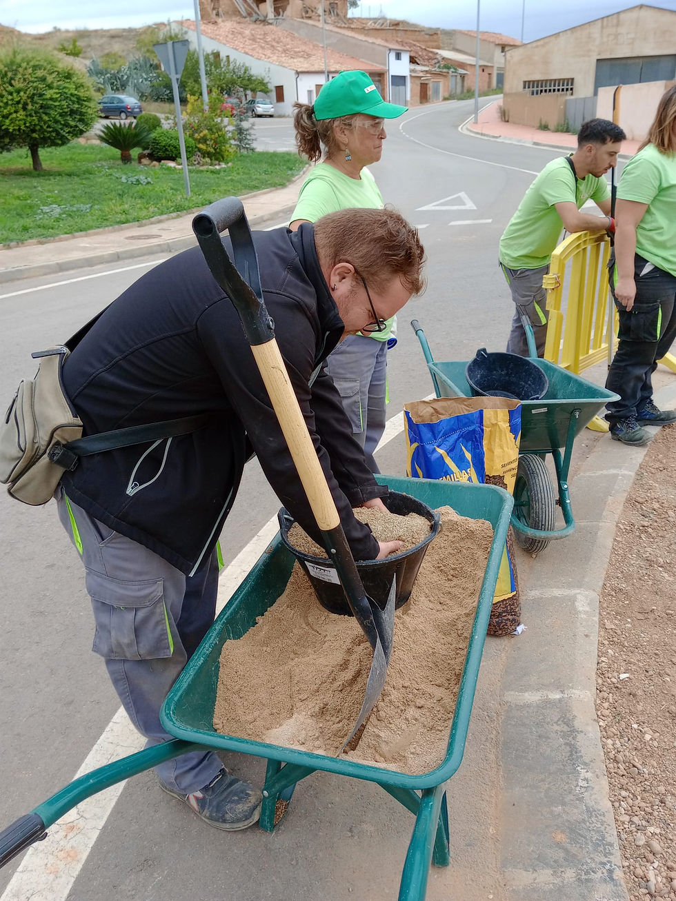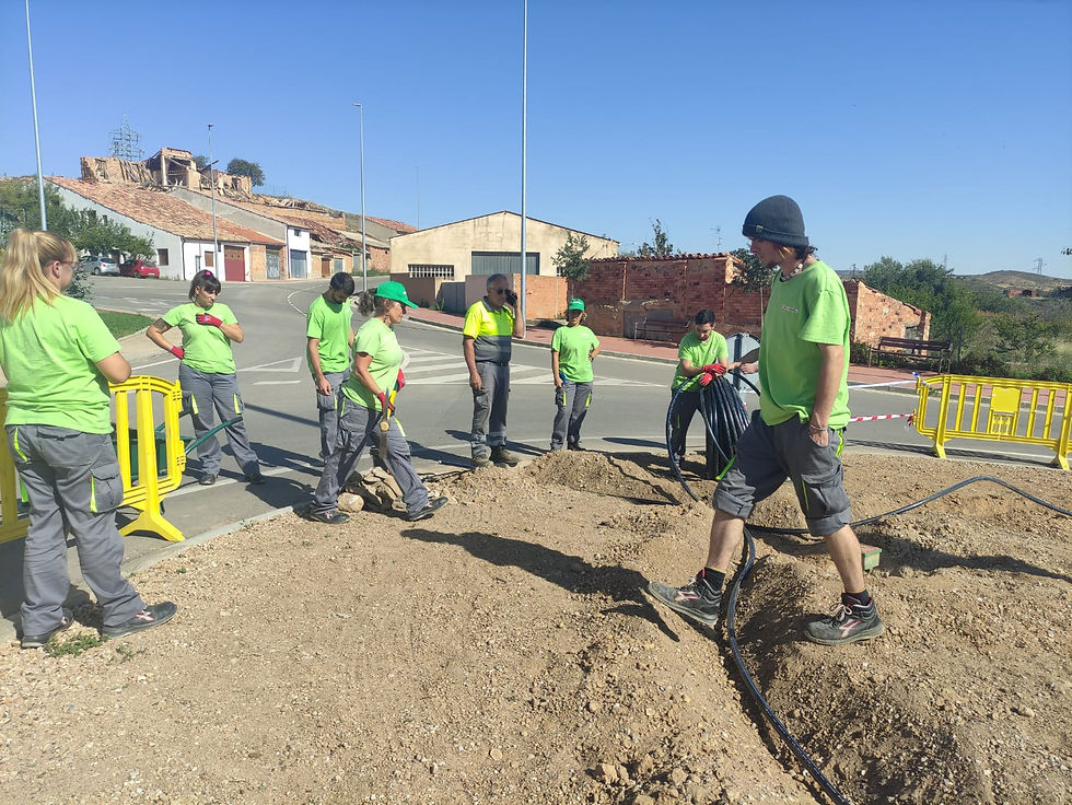 En la rotonda situada en la parte alta del pueblo junto al nuevo jardin restaurado por el equipo del plan experiencial de jardineria y forestal, se realizo una limpieza, nivelación del terreno, instalación de riego y siembra de cesped, entre otros trabajos.